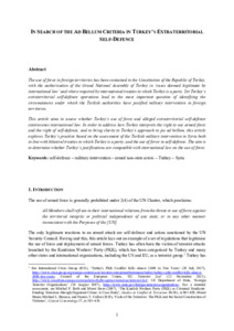 The use of force in foreign territories has been contained in the Constitution of the Republic of Turkey, with the authorisation of the Grand National Assembly of Turkey in ‘cases deemed legitimate by international law’ and where required by international treaties to which Turkey is a party. Yet Turkey’s extraterritorial self-defence operations lead to the most important question of identifying the circumstances under which the Turkish authorities have justified military intervention in foreign territories. This article aims to assess whether Turkey’s use of force and alleged extraterritorial self-defence contravenes international law. In order to address how Turkey interprets the right to use armed force and the right of self-defence, and to bring clarity to Turkey’s approach to jus ad bellum, this article explores Turkey’s practice based on the assessment of the Turkish military intervention in Syria both in line with bilateral treaties to which Turkey is a party, and the use of force in self-defence. The aim is to determine whether Turkey’s justifications are compatible with international law on the use of force.