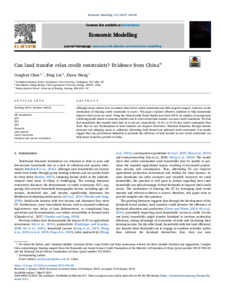 Although many studies have examined what drives credit constraints and their negative impact, evidence on the mechanism of relaxing credit constraints is scarce. This paper explores effective solutions to help households improve their access to credit. Using the China Family Panel Studies data from 2018, we employ an endogenous switching probit model to examine whether and to what extent land transfer can ease credit constraints. We find that households that transfer their land in or out are, respectively, 31.4% or 21.4% less credit constrained than those that do not. Participation in land transfers can improve borrowers’ financial situations through income increases and pledging assets as collateral, alleviating both formal and informal credit constraints. Our results suggest that any government initiatives to promote the efficiency of land transfer to ease credit constraints can help boost economic growth in China.