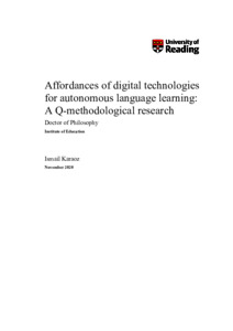 Karaoz, I. (2020) Affordances of digital technologies for autonomous language learning: a Q-methodological research. PhD thesis, University of Reading. doi: 10.48683/1926.00108502