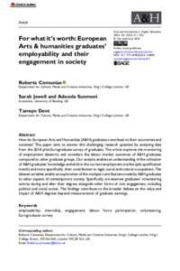 For what it’s worth: European Arts & Humanities graduates’ employability and their engagement in society.
