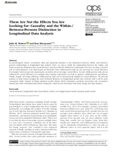 Rohrer, J. M. and Murayama, K. (2023) These are not the effects you are looking for: causality and the within-/between-person distinction in longitudinal data analysis. Advances in Methods and Practices in Psychological Science, 6 (1). pp. 1-14. ISSN 2515-2459 doi: 10.1177/25152459221140842
