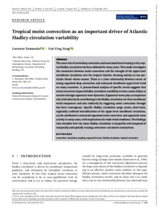 The exact role of moist deep convection and associated latent heating in the tropical Hadley circulation has been debated for many years. This study investigates the connection between moist convection and the strength of the upper-level meridional circulation over the tropical Atlantic, focusing mainly on one particular boreal winter season. There is a close relationship between events of strong organised deep convection and enhanced meridional upper-level wind on many occasions. A process-based analysis of specific events suggests that moist convection impacts Hadley circulation variability on time-scales of days to months through equatorial wave dynamics. Equatorial waves play an important role, both directly by contributing to the Hadley circulation via their meridional wind component and also indirectly by triggering moist convection through low-level convergence. Specific Hadley circulation surge events, short-term, regionally confined intensifications of the upper-level meridional circulation, can be attributed to enhanced organised moist convection and equatorial wave activity in many cases, with implications for trade wind cloudiness. The findings thus elucidate how the mean Hadley circulation is shaped by and composed of temporally and spatially varying convection–circulation interactions.