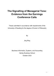 Ning, J. (2022) The signalling of managerial tone: evidence from the earnings conference calls. PhD thesis, University of Reading. doi: 10.48683/1926.00108605