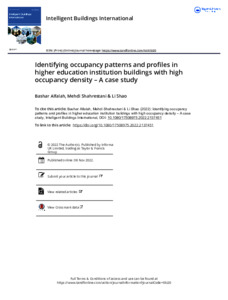 Alfalah, B., Shahrestani, M. ORCID: https://orcid.org/0000-0002-8741-0912 and Shao, L. ORCID: https://orcid.org/0000-0002-1544-7548 (2023) Identifying occupancy patterns and profiles in higher education institution buildings with high occupancy density – a case study. Intelligent Buildings International Journal, 15 (2). pp. 45-61. ISSN 1750-8975 doi: 10.1080/17508975.2022.2137451