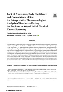Lack of awareness, body confidence and connotations of sex: an interpretative phenomenological analysis of barriers affecting the decision to attend initial cervical cancer screening.