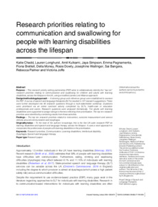 Research priorities relating to communication and swallowing for people with learning disabilities across the lifespan.