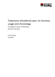 Chiang, L.-C. (2020) Taiwanese shouldered axes: its function, usage and chronology. PhD thesis, University of Reading. doi: 10.48683/1926.00108773