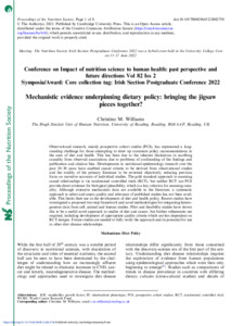 Williams, C. M. (2023) Mechanistic evidence underpinning dietary policy: bringing the jigsaw pieces together? Proceedings of the Nutrition Society, 82 (2). pp. 1-8. ISSN 1475-2719 doi: 10.1017/S0029665122002750