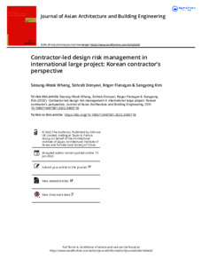 Whang, S.-W., Donyavi, S., Flanagan, R. and Kim, S. (2023) Contractor-led design risk management in international large project: Korean contractor’s perspective. Journal of Asian Architecture and Building Engineering, 22 (3). pp. 1387-1398. ISSN 1347-2852 doi: 10.1080/13467581.2022.2085718