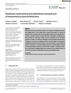 Emotional, motivational and attitudinal consequences of autonomous prosocial behaviour.