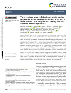 Time-resolved infra-red studies of photo-excited porphyrins in the presence of nucleic acids and in HeLa tumour cells: insights into binding site and electron transfer dynamics