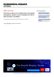 Empirical evidence for multidecadal scale global atmospheric electric circuit modulation by the El Niño-southern oscillation.