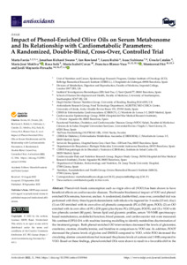 Farràs, M., Swann, J. R., Rowland, I., Rubió, L., Subirana, I., Catalán, Ú., Motilva, M. J., Solà, R., Covas, M. I., Blanco-Vaca, F., Fitó, M. and Mayneris-Perxachs, J. (2022) Impact of phenol-enriched olive oils on serum metabonome and its relationship with cardiometabolic parameters: a randomized, double-blind, cross-over, controlled trial. Antioxidants, 11 (10). 1964. ISSN 2076-3921 doi: 10.3390/antiox11101964