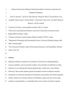 Sediment geochemistry influences infaunal invertebrate community composition and population abundances