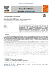 Duan, K. and Urquhart, A. ORCID: https://orcid.org/0000-0001-8834-4243 (2023) The instability of stablecoins. Finance Research Letters, 52. 103573. ISSN 1544-6123 doi: 10.1016/j.frl.2022.103573