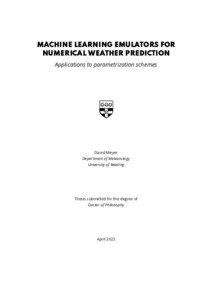 Meyer, D. (2022) Machine Learning Emulators for Numerical Weather Prediction—Applications to Parametrization Schemes. PhD thesis, University of Reading. doi: 10.48683/1926.00109229