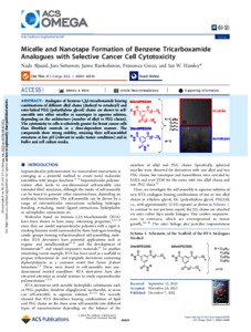 Micelle and nanotape formation of Benzene Tricarboxamide analogues with selective cancer cell cytotoxicity