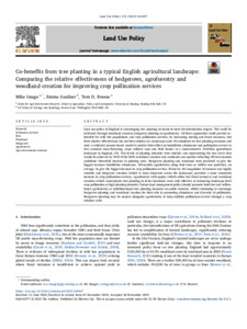 Co-benefits from tree planting in a typical English agricultural landscape: comparing the relative effectiveness of hedgerows, agroforestry and woodland creation for improving crop pollination services.