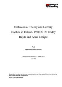Genoveffa, G. (2021) Postcolonial theory and literary practice in Ireland, 1980-2015: Roddy Doyle and Anne Enright. PhD thesis, University of Reading. doi: 10.48683/1926.00109299