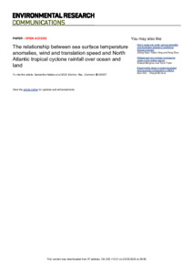 Hallam, S., McCarthy, G. D., Feng, X. ORCID: https://orcid.org/0000-0003-4143-107X, Josey, S. A., Harris, E., Düsterhus, A., Ogungbenro, S. and Hirschi, J. J.-M. (2023) The relationship between sea surface temperature anomalies, wind and translation speed and North Atlantic tropical cyclone rainfall over ocean and land. Environmental Research Communications, 5 (2). 025007. ISSN 2515-7620 doi: 10.1088/2515-7620/acb31c