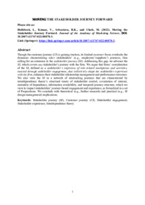• Lievens, A. & Blažević, V. (2021). A service design perspective on the stakeholder engagement journey during B2B innovation: Challenges and future research agenda. Industrial Marketing Management, 95(May), 128-141.