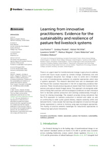 Learning from innovative practitioners: evidence for the sustainability and resilience of pasture fed livestock systems.