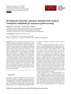 Revisiting the wintertime emergent constraint of the southern hemispheric midlatitude jet response to global warming.