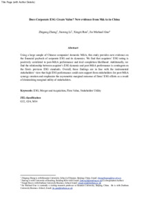 Using a large sample of Chinese companies’ domestic M&A, this study provides new evidence on the financial payback of corporate ESG and its dynamics. We find that acquirers’ ESG rating is positively correlated to post-M&A performance and deal completion likelihood. Additionally, we find the relationship between acquirer’s ESG dynamic and post-M&A performance is contingent on the firm’s previous ESG standards. Overall, these findings are in line with the instrumental stakeholders’ view that high ESG performance could earn support from stakeholders for post- M&A synergy creation and emphasize the asymmetric marginal outcome of firms’ ESG efforts as a result of diminishing marginal utility of stakeholders.