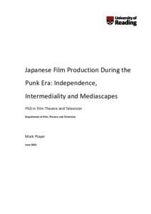 This thesis applies an intermedial reading to the work of four Japanese ‘self-made’ (jishu) filmmakers who emerged during the punk era of the 1970s and 1980s: Ishii Sōgo, Yamamoto Masashi, Tsukamoto Shin’ya and Fukui Shōzin. Having come of age during the ‘apathetic’ (shirake) years that followed the implosion of Japan’s highly politicised ‘student movement’ (gakusei undō) in 1972, these ‘punk generation’ filmmakers selffunded, self-produced and self-exhibited short and feature-length narrative cinematic works as a means of personal—rather than political—expression, using accessible ‘home movie’ formats such as Super-8. Their activities resonated with Japan’s emerging punk scene, whose ethos was that ‘anyone can do it’, resulting in numerous collaborations during the impoverished production and makeshift exhibition strategies of their self-made films. As a result, ‘punk generation’ film practice became an original intermedial bricolage, including various forms of do-it-yourself (DIY) spectacle, that drew the attention of the film industry and led to career opportunities. Drawing on theories of intermediality that investigate interconnectedness and conceptual fusions between different media, this thesis examines the ways the selected filmmakers Ishii, Yamamoto, Tsukamoto and Fukui incorporated punk and non-cinematic arts and media in their works. The thesis argues that these filmmakers did so to compensate for their financial, technical and experiential shortcomings in the first instance. But these resulting intermedial aesthetics also strongly reflected the evolving socioeconomic situation of ‘self-made’ filmmaking and the punk scene, as both DIY media expressions were subsequently absorbed by Japan’s diversifying and increasingly commercial mediascape throughout the 1980s. This thesis is the first to use intermediality to provide a history of Japan’s punk generation, from its euphoric high at the start of the 1980s to the growing dysphoria brought about by the emergence of Japan’s late-80s ‘bubble economy’ (baburu keiki).