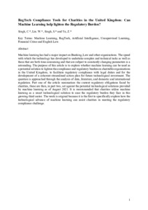 Singh, C., Lin, W., Singh, S. P. and Ye, Z. (2022) RegTech compliance tools for charities in the United Kingdom: can machine learning help lighten the regulatory burden? Company Lawyer, 43 (1). pp. 3-11. ISSN 0144-1027