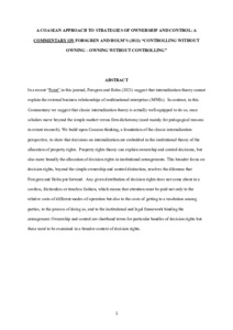 A Coasean approach to strategies of ownership and control: a commentary on Forsgren and Holm’s (2021) ‘‘Controlling without owning – owning without controlling’’