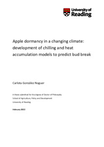 González Noguer, C. (2022) Apple dormancy in a changing climate: development of chilling and heat accumulation models to predict bud break. PhD thesis, University of Reading. doi: 10.48683/1926.00109868