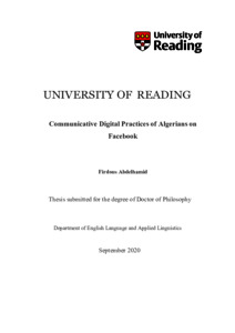 Abdelhamid, F. (2021) Communicative digital practices of Algerians on Facebook. PhD thesis, University of Reading. doi: 10.48683/1926.00109912