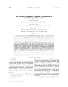 Haigh, J. D., Blackburn, M. and Day, R. (2005) The response of tropospheric circulation to perturbations in lower-stratospheric temperature. Journal of Climate, 18 (17). pp. 3672-3685. ISSN 1520-0442 doi: 10.1175/JCLI3472.1