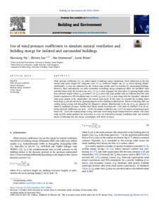 Use of wind pressure coefficients to simulate natural ventilation and building energy for isolated and surrounded buildings.