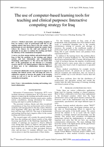 Al Eshaiker, S. Y. (2008) The use of computer-based learning tools for teaching and clinical purposes: Interactive computing strategy for Iraq. IEEE Multidisciplinary Engineering Education Magazine, 3 (3). pp. 108-111. ISSN 1558-7908