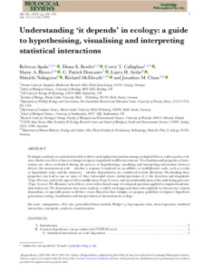 Spake, R. ORCID: https://orcid.org/0000-0003-4671-2225, Bowler, D. E., Callaghan, C. T., Blowes, S. A., Doncaster, C. P., Antao, L. H., Nakagawa, S., McElreath, R. and Chase, J. M. (2023) Understanding ‘it depends’ in ecology: a guide to hypothesising, visualising and interpreting statistical interactions. Biological Reviews, 98 (4). pp. 983-1002. ISSN 1469-185X doi: 10.1111/brv.12939