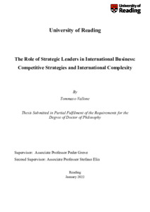 Vallone, T. (2022) The role of strategic leaders in international business: competitive strategies and international complexity. PhD thesis, University of Reading. doi: 10.48683/1926.00110564