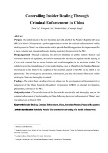 Ye, Z., Lin, W., Safari, N. and Singh, C. (2020) Controlling insider dealing through criminal enforcement in China. Journal of Financial Crime, 27 (4). pp. 1061-1073. ISSN 1359-0790 doi: 10.1108/JFC-05-2020-0089