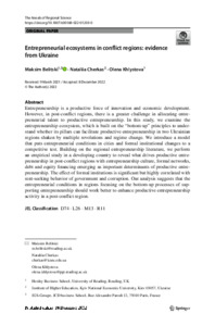 Entrepreneurial ecosystems in conflict regions: evidence from Ukraine.