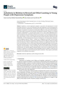 Anhedonia, a central depression symptom, is associated with impairments in reward processing. However, it is not well understood which sub-components of reward processing (anticipation, motivation, consummation, and learning) are impaired in association with anhedonia in depression. In particular, it is unclear how learning about different rewards and the effort needed to obtain them might be associated with anhedonia and depression symptoms. Therefore, we examined learning in young people (N = 132, mean age 20, range 17–25 yrs.) with a range of depression and anhedonia symptoms using a probabilistic instrumental learning task. The task required participants to learn which options to choose to maximize their reward outcomes across three conditions (chocolate taste, puppy images, or money) and to minimize the physical effort required to obtain the rewards. Additionally, we collected questionnaire measures of anticipatory and consummatory anhedonia, as well as subjective reports of “liking”, “wanting” and “willingness to exert effort” for the rewards used in the task. We found that as anticipatory anhedonia increased, subjective liking and wanting of rewards decreased. Moreover, higher anticipatory anhedonia was significantly associated with lower reward learning accuracy, and participants demonstrated significantly higher reward learning than effort learning accuracy. To our knowledge, this is the first study observing an association of anhedonia with reward liking, wanting, and learning when reward and effort learning are measured simultaneously. Our findings suggest an impaired ability to learn from rewarding outcomes could contribute to anhedonia in young people. Future longitudinal research is needed to confirm this and reveal the specific aspects of reward learning that predict anhedonia. These aspects could then be targeted by novel anhedonia interventions.