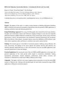 Zakaria, B., Nasly, M., Haron, A.T. and Marshall-Ponting, A. (2013), “Exploring the adoption of building information modelling (BIM) in the Malaysian construction industry: a qualitative approach”, International Journal of Research in Engineering and Technology, Vol. 2 No. 8, pp. 384-395.