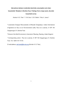 Tete, K. H. S., Soro, Y. M., Sidibé, S. S. and Jones, R. V. ORCID: https://orcid.org/0000-0002-2716-9872 (2023) Urban domestic electricity consumption in relation to households’ lifestyles and energy behaviours in Burkina Faso: findings from a large-scale, city-wide household survey. Energy and Buildings, 285. 112914. ISSN 1872-6178 doi: 10.1016/j.enbuild.2023.112914