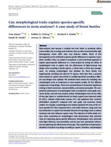 Hagge, J., Müller, J., Birkemoe, T., Buse, J., Christensen, R. H. B., Gossner, M. M., Gruppe, A., Heibl, C., Jarzabek-Müller, A., Seibold, S., Siitonen, J., Soutinho, J. G., Sverdrup-Thygeson, A., Thorn, S., & Drag, L. (2021b). What does a threatened saproxylic beetle look like? Modelling extinction risk using a new morphological trait database. Journal of Animal Ecology, 90(8), 1934–1947. https://doi.org/10.1111/1365-2656.13512