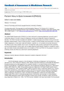 Cheung, R. Y. M. ORCID: https://orcid.org/0000-0003-0998-7991 (2022) Patient Health Questionnaire-9 (PHQ-9). In: Medvedev, O. N., Krägeloh, C. U., Siegert, R. J. and Singh, N. N. (eds.) Handbook of assessment in mindfulness research. Springer. doi: 10.1007/978-3-030-77644-2