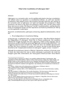 Cybersapce, as a normative order, can be usefully understood as having a constitution, and debates about its regulation as constitutional debates. As with more familiar constitutions, these debates concern the procedures through which the rules making up the normative order of cyberspace are made and changed, the participants in these procedures, the limits on the scope and substance of these rules, and the values which these rules serve to realize. The lessons of “real life” constitutionalism, notably about the limits of constitutional design and the importance of structural protections for liberty are thus applicable in cyberspace.