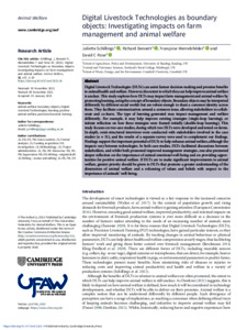 Schillings, J., Bennett, R. ORCID: https://orcid.org/0000-0003-3226-8370, Wemelsfelder, F. and Rose, D. C. (2023) Digital livestock technologies as boundary objects: investigating impacts on farm management and animal welfare. Animal Welfare, 32. e17. ISSN 0962-7286 doi: 10.1017/awf.2023.16