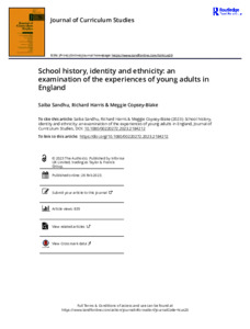Harris, R. & Reynolds, R. (2014). The history curriculum and its personal connection to students from minority ethnic backgrounds. Journal of Curriculum Studies, 46(4), 464-486. https://doi.org/10.1080/00220272.2014.881925