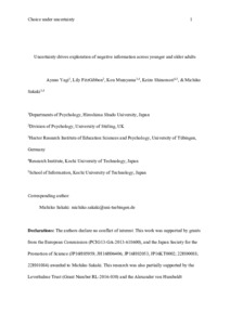 Although individuals generally avoid negative information, recent research documents that they voluntarily explore negative information to resolve uncertainty. However, it remains unclear (a) whether uncertainty facilitates exploration similarly when exploration is expected to lead to negative, neutral, or positive information, and (b) whether older adults seek negative information to reduce uncertainty like younger adults do. This study addresses the two issues across four experimental studies (N = 407). The results indicate that individuals are more likely to expose themselves to negative information when uncertainty is high. In contrast, when information was expected to be neutral or positive, the uncertainty surrounding it did not significantly alter individuals’ exploration behavior. Furthermore, we found that uncertainty increased the exploration of negative information in both older and younger adults. In addition, both younger and older adults chose to explore negative information to reduce uncertainty, even when there were positive or neutral alternatives. In contrast to the age-related similarities in these behavioral measures, older adults demonstrated reduced scores in questionnaires on sensation seeking and curiosity, relative to their counterparts who were younger. These results suggest that information uncertainty has a selective facilitation effect on exploration for negative information, and that normal aging does not alter this tendency, despite age-related reductions in self-reported measures of personality traits relevant to information seeking.