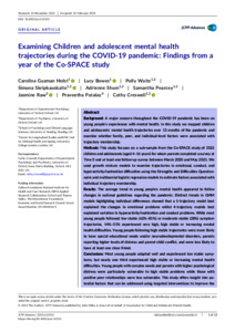 Examining children and adolescent mental health trajectories during the COVID-19 Pandemic: findings from a year of the Co-SPACE study.